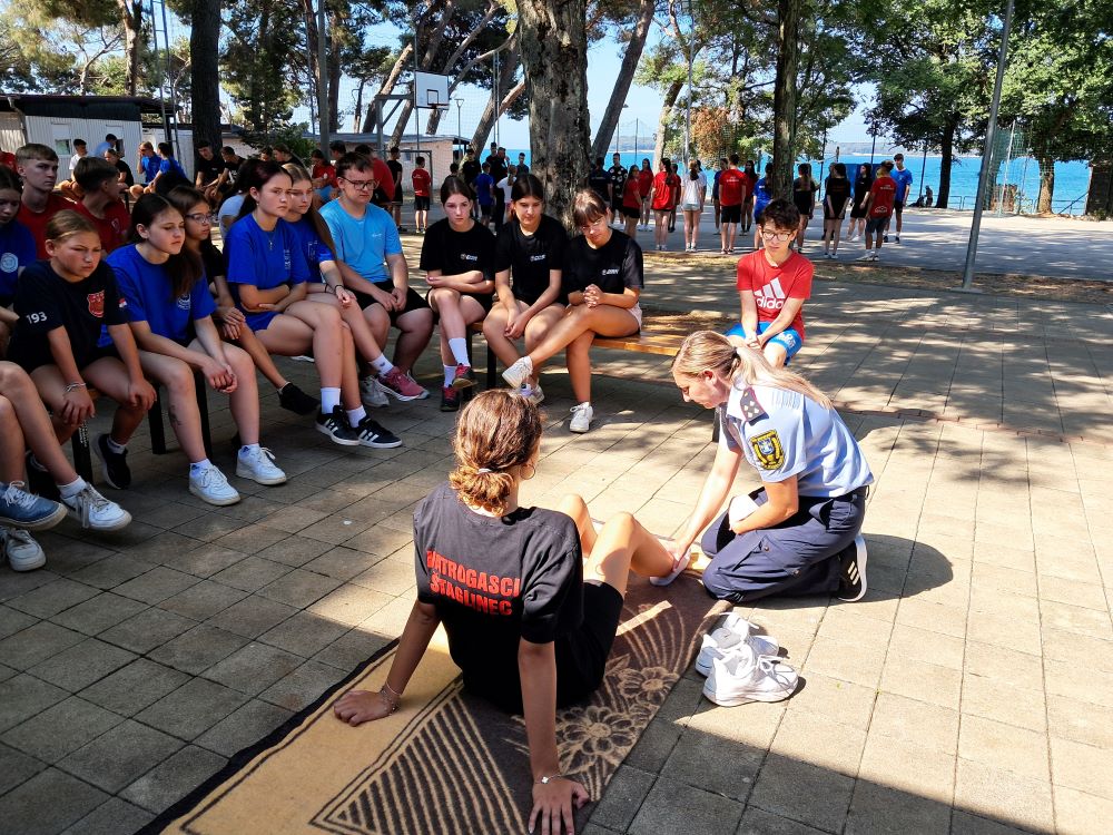 U prijepodnevnim satima mladež je učila osnove ponašanja u stroju, vježbe s vatrogasnom motornom štrcaljkom i prvu pomoć za koju su bile zadužene voditeljice DVD-a Štaglinec.