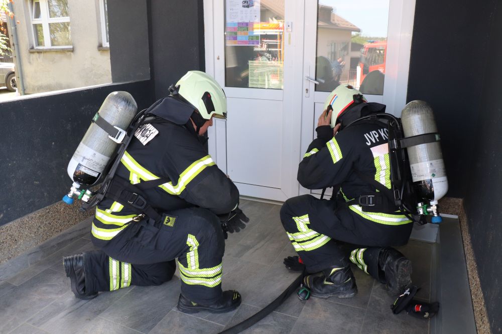 JVP Koprivnica odmah započinje spašavanje zarobljenih osoba, dok DVD Štaglinec i DVD Jagnjedovec provode unutarnju i vanjsku navalu na objekt vrtića i škole. Tijekom pretraživanja objekta vatrogasci pronalaze kuharicu bez svijesti te dvoje djece pri svijesti, ali nesposobne za hodanje. Kuharica je predana djelatnicima hitne medicinske pomoći, dok djecu zbrinjavaju bolničari iz DVD‑a Starigrad i DVD‑a Jagnjedovec.